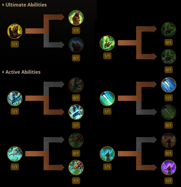 Aqui vai uma lista de todas as habilidades que você precisa EVOLUIR no seu Warden focado em Magicka, então arranje algum slot para elas, algumas não necessitam de morph a princípio pois tudo vai depender se você seguirá para o PvP ou PvE futuramente, porém você pode evoluir elas facilmente depois, então não se preocupe.